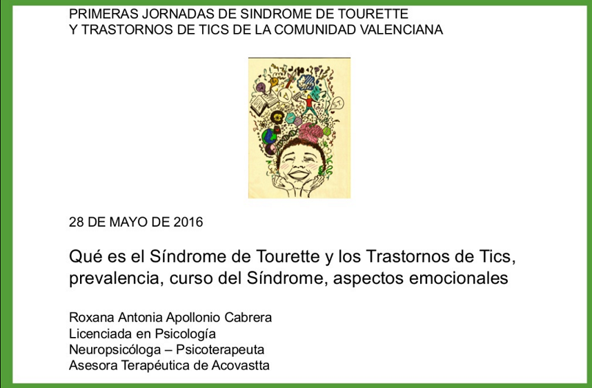 I Jornadas de Sindrome de Tourette de la Comunidad Valenciana 2016
